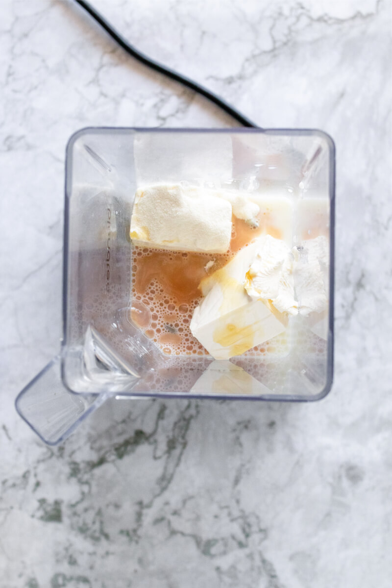 - To the blender, add the cream cheese, honey, milk, vanilla extract and optional collagen and blend just until combined. Add 1 cup of the mixture to a mixing bowl and set aside. Then add the blackberries to the blender and blend just until fully combined.