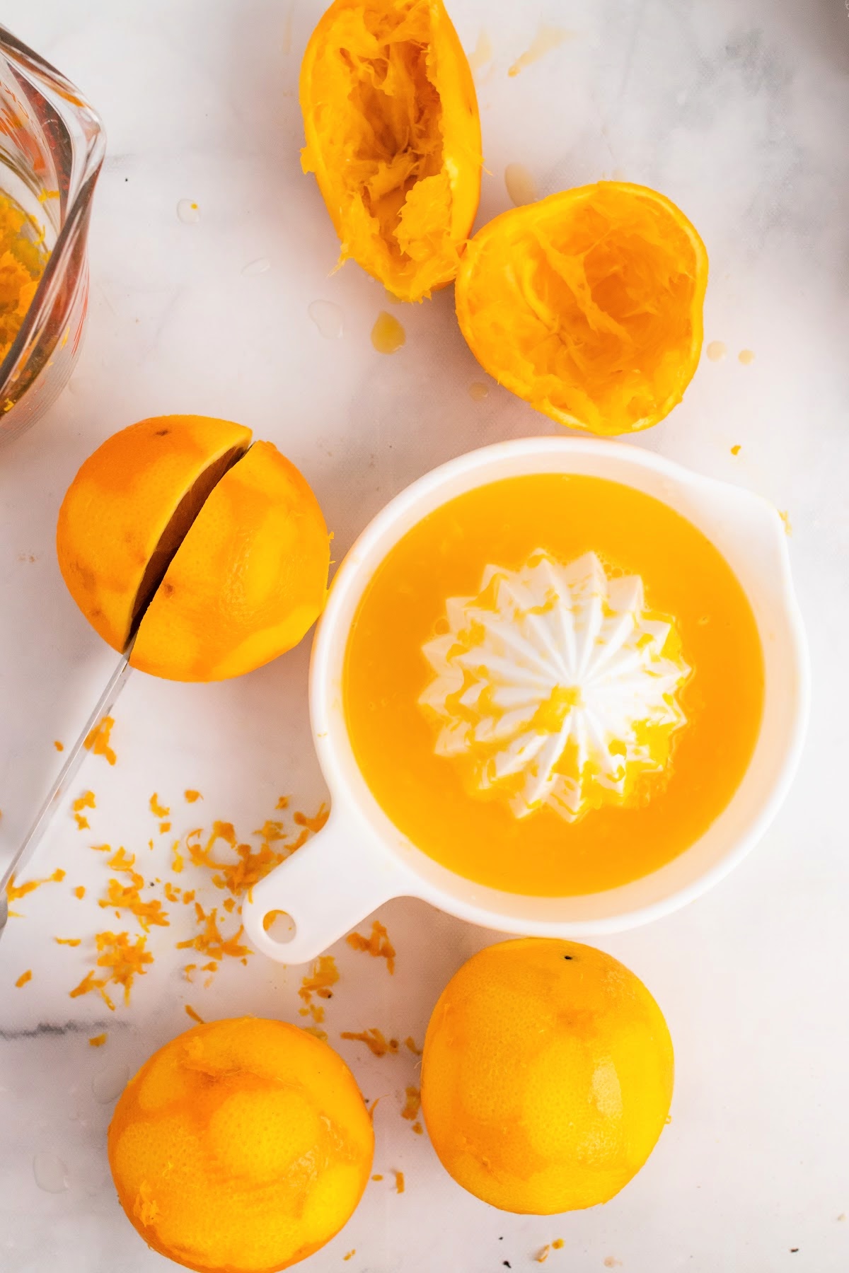 - Fresh Orange Juice: Freshly squeezed orange juice is so delicious! You’ll need approximately 3 large, juicy oranges to make enough orange juice for this recipe. Valencia and Navel oranges are good varieties to look for, they tend to have more juice which makes them great for juicing. Navel oranges tend to be a bit sweeter - a plus in my opinion! Cara Cara oranges are sweet and rich in flavor too, however their inner flesh is more red in color and will produce a pink-ish color.