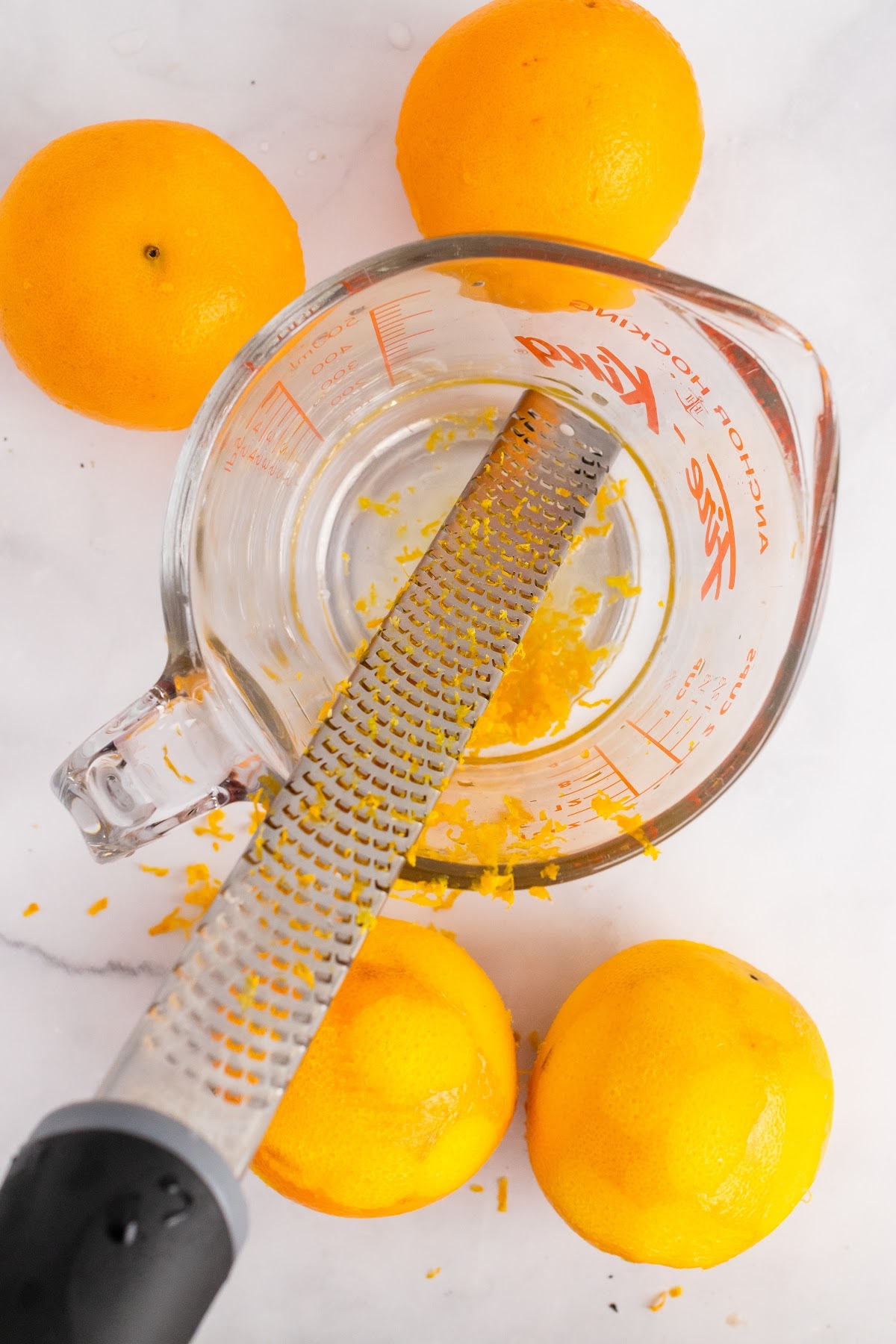 - Orange Zest: This adds extra flavor, but it’s totally optional. Zesting any citrus enhances the citrusy flavor in the food being prepared because it’s rich in the natural oils of the fruit. I recommend using organic citrus if you’re using the zest. Make sure to only zest the colorful part of the orange peel, not the inner white pith - because the white pith is bitter.